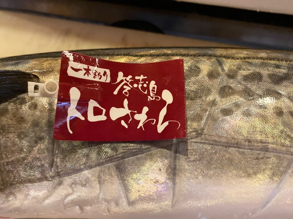今年も始まりました、三重の極上のトロさわら、全身に脂が乗っていて、食べると、口の中でとろけます。トロさわらは三重のブランドです、必ず尻尾にとって来た船の名前が入ったタグが付いてます。磯陣では、たたき、握り、焼き物で提供しております。年内で終わりなので是非この機会にご賞味ください。