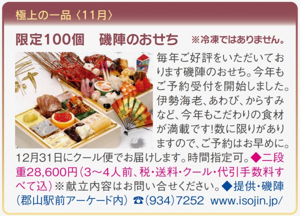郡山の和食「磯陣」のブログ お節料理予約始まりました。